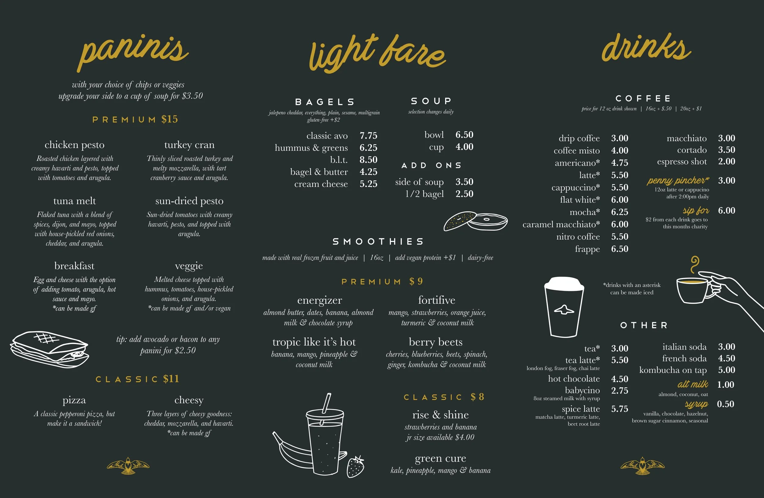 We have hand-chosen a local roaster, Smoking Gun Coffee for our in-house bean. Their attention to detail and obsession over coffee won us over right away, but when we tasted the coffee, that’s when we knew.